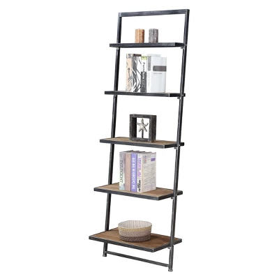 Lean into fashion with the Laredo 5 Tier Ladder Bookcase by Breighton Home. Displaying a rustic industrial style, this leaning bookshelf will complete your ensemble and refresh your home decor. This functional piece of art includes five shelves fashioned from fir plywood that provides ample space to stage all your family portraits or favorite books. The distressed metal frame contrasts with the natural finish of the shelves while creating stability and adds to the sturdiness of this shelving unit. This five tiered leaning ladder was made for longevity and easy maintenance. Enjoy its versatility and optimize both storage and display space in your living room, home study or den. Enjoy this ladder bookshelf minutes after delivery with its easy and convenient 3 step assembly. Versatile, fashionable and easy to assemble, this unique bookcase is the perfect addition to your home. Pair with additional pieces from the Laredo Collection by Breighton Home today! Each sold separately.