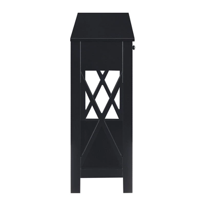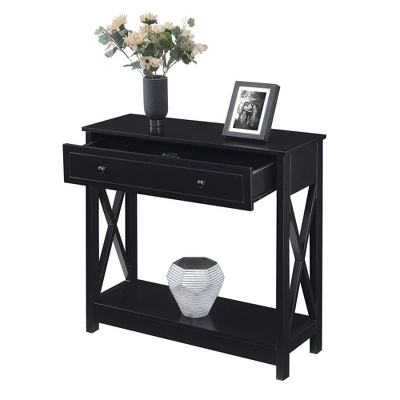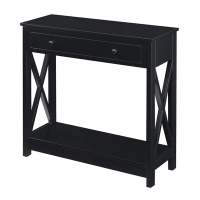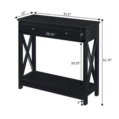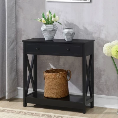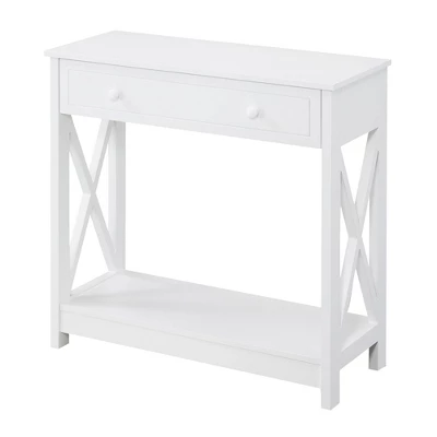 Make your home truly timeless with the Oxford 1 Drawer Entryway Hall Table with Shelf by Breighton Home. This transitional hallway table features a pull-out drawer on smooth roller slides with two minimal drawer knobs for easy accessibility. The wide drawer gives plenty of room to stow away entryway essentials such as car keys, mail, and more. Unique side X-panels mesh with many interior styles such as farmhouse, industrial, and even coastal. A spacious tabletop and additional bottom shelf are perfect for display of decorative home favorites. Carefully crafted with manufactured wood and finished with smooth non-lead-based paint, this stylish unit is sure to last. Pair with additional coordinating pieces from the Oxford Collection by Breighton Home, each sold separately.