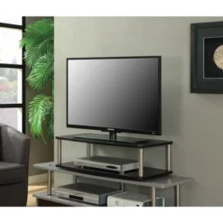 Designs2Go No Tools Wide Highboy 4 Tier TV Stand For TVs Up To 43″ Black – Breighton Home
